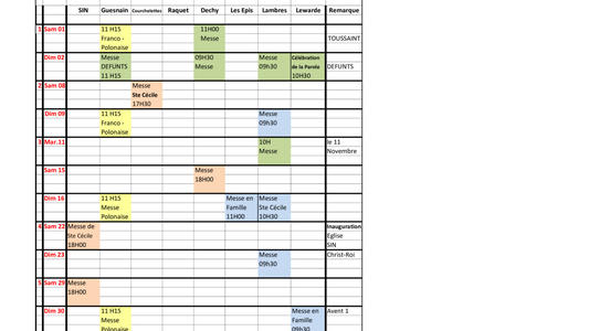 les Messes dans la Paroisse pour NOVEMBRE 2025